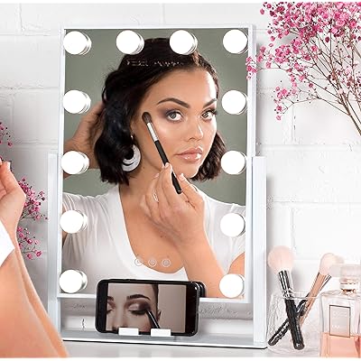 Rebel Poppy Vanity Mirror with Lights - Lighted Mirror with 3 Colour Touch Control and Phone Holder, Hollywood Style Makeup Mirror with Replaceable and Dimmable LED Bulbs, White, Hollywood