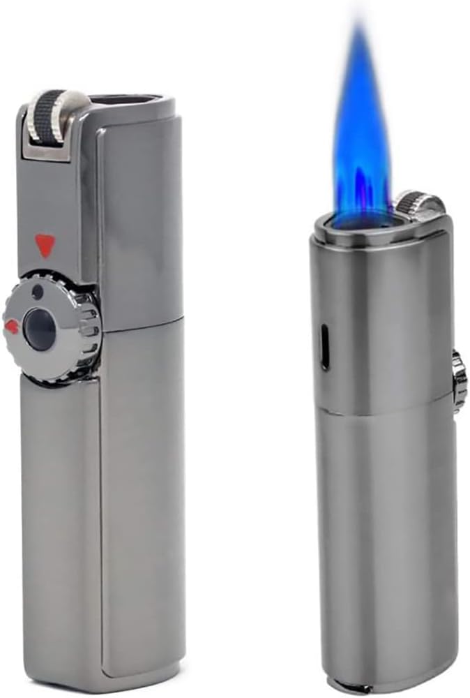 Butane Torch Lighter - Windproof Lighter with Punch and Replaceable Flint, Adjustable Refillable Triple Jet Flame Lighter for Grill BBQ Candle Camping, Men Gift, 1PCS Black